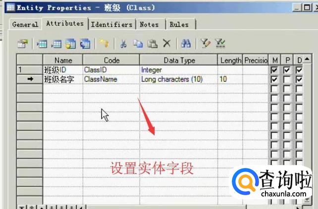 然后切换到Attribute选项,在这个界面设置实体所拥有的属性字段,如下图所示