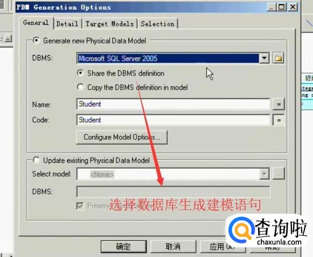 最后在弹出的界面中选择要建模的数据库版本,然后就可以生成建模语言了,如下图所示