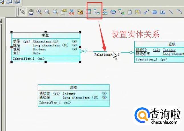 接下来设置完实体,我们在拖动关系图标给实体添加关系,如下图所示