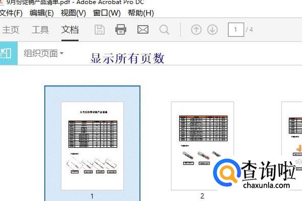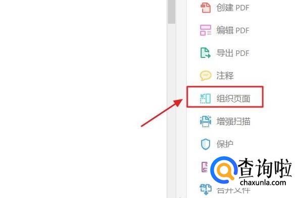 接下来我们先说第一种情况,那就是多页PDF文件中,有一整页或者数页全部不是我们需要的,此时我们点击软件右侧的“组织页面”,然后可以看到所有文件的页数;