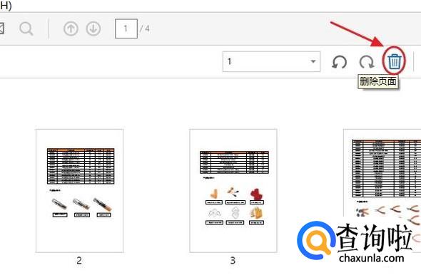 我们点击选中不需要的那一页,然后在该页面右上角点击垃圾桶图标,这样就将其整页删除掉了,如图二...