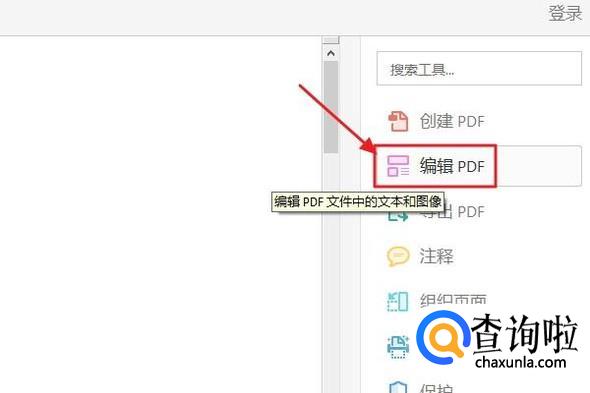 如果属于第二种,也就是一页里面的某部分内容我们不需要,那就不能用此方法了;我们首先需要打开这页内容,然后在右侧找到“编辑PDF”选项;
