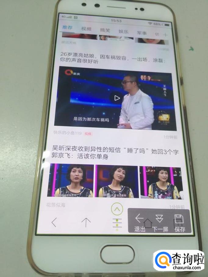 点击保存按钮后,屏幕上方出现消息提示正在保存屏幕截图,这个长截图就保存在手机中了。