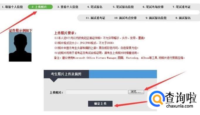 上传照片。照片大小一定要符合规定,审核不过大多都是照片的问题,所以一定仔细阅读照片要求。