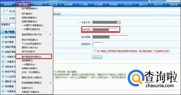 点击账户管理,在选项卡中选择客户联系资料修改,点击