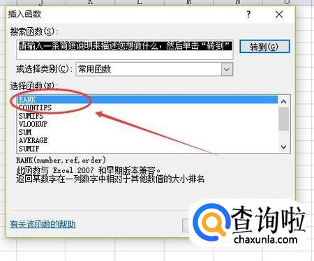 选择“rank”函数。