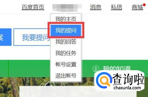 登陆成功后,点击你自己的百度角色名,会出现一个小方框,点击小方框中的“我的提问”。
