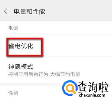 转到电量和性能页面。在这里点击:省电优化