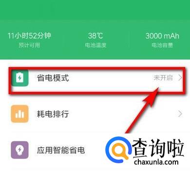 转到省电优化页面,就看到“省电模式”,而这里显示是“未开启”的。