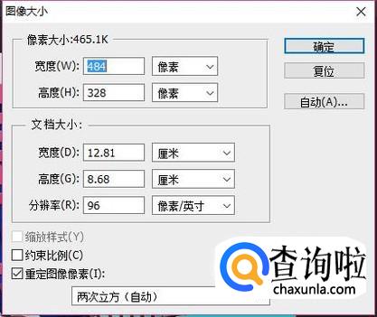 接着,我们就来到了图像大小的设置界面,可以看到图片的默认长度和宽度。