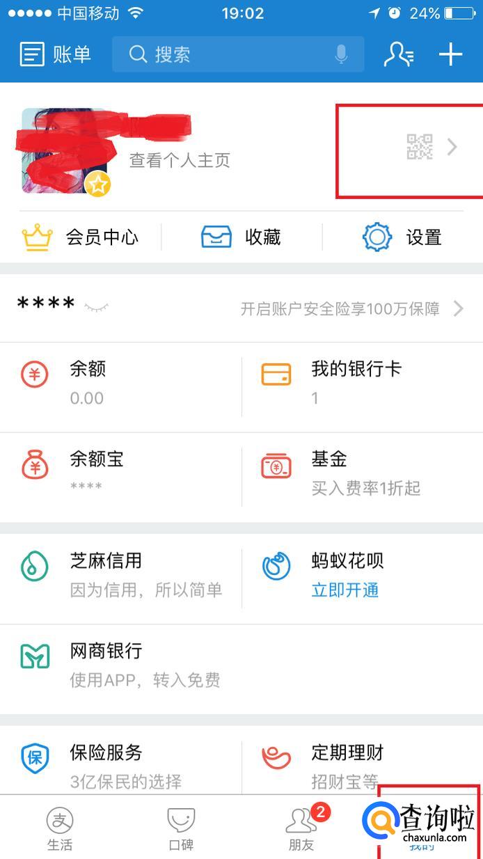 首先打开手机上的支付宝app,进入支付宝页面,选择“我的”,点击右上方头像。如图所示。
