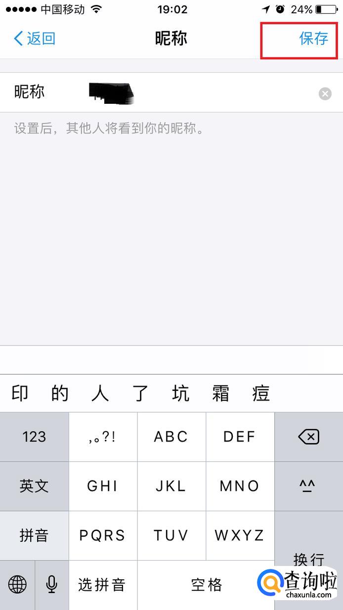 填写你要更改的昵称,点击保存。如图所示。