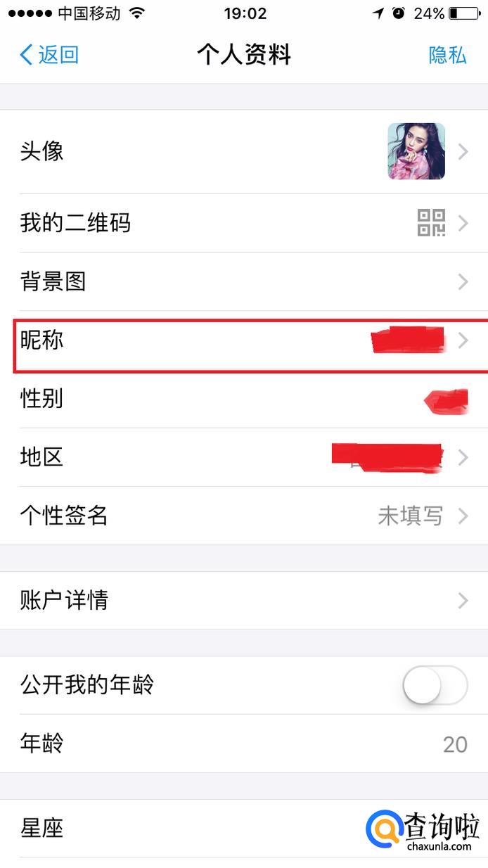 选择“昵称”。如图所示。