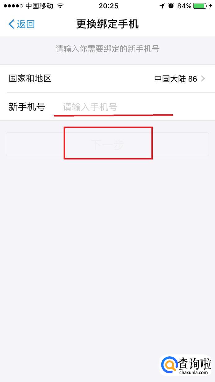 填写新手机号,选择下一步,新的手机号回收到验证码,输入验证码就可以了。如图所示。