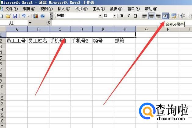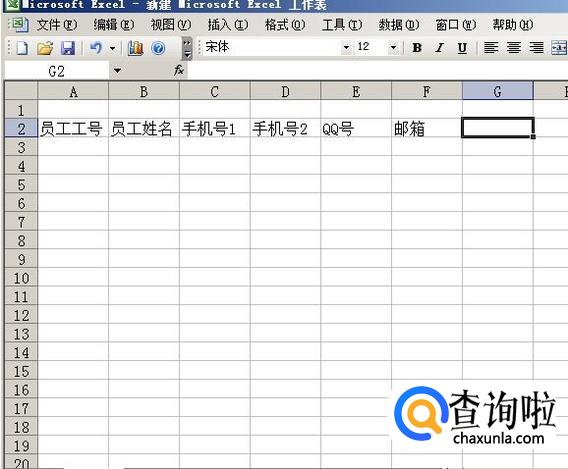 我们在表格的第一排预留出来位置,写表格名称。然后从第二排开始编辑,把完整的员工联系表需要填列的内容名称填写进去。