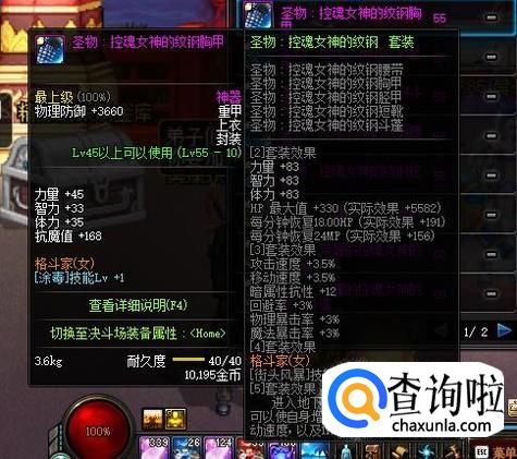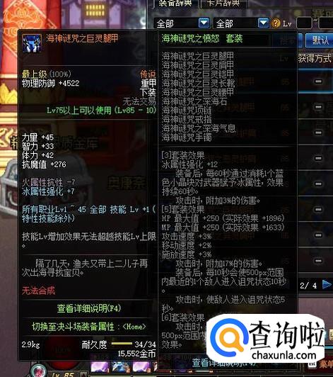 上衣部位,可以选择55级的圣物重甲上衣“控魂女神的纹钢胸甲”,针对毒王可以提供1级的【涂毒】技能等级加成。