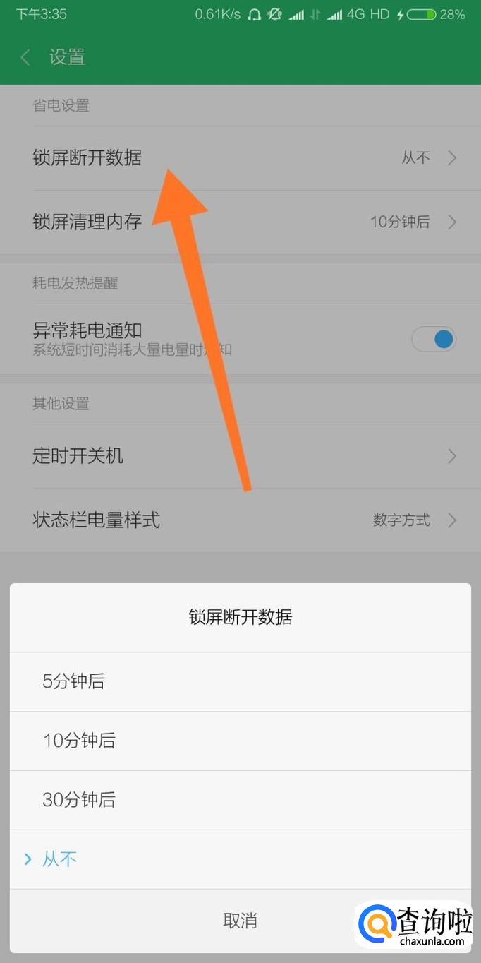 最后把“锁屏断开数据”的时间设置为“永不”即可。