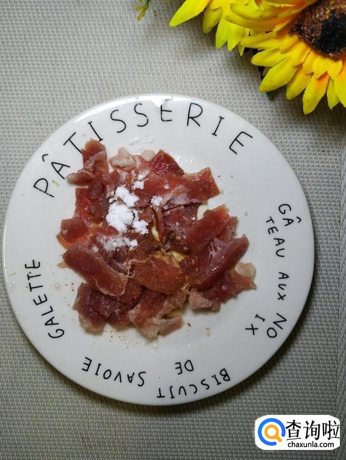 准备适量牛肉,洗净后切成薄片,放入适量盐,鸡精,五香粉,生抽,料酒,五香粉,淀粉,搅拌均匀,腌制十分钟左右。