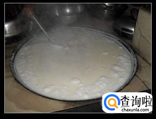 下一步开始烧水,将豆浆倒入开水中,不断搅拌,盖上盖子煮3--5分钟,揭盖除去豆皮,接着撇去泡沫,加入卤水,继续搅拌,直至有大块豆花形成