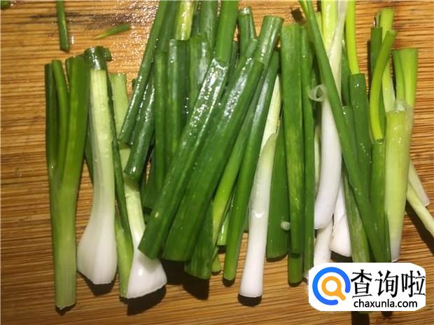 香葱清洗干净,切段,备用。
