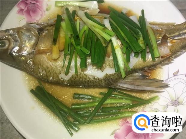 大火蒸10分钟左右,然后把葱段均匀铺在鱼身上,再盖上锅盖蒸两分钟,出锅后撒上少许花生油,即可享受美味清甜的鳊鱼了。