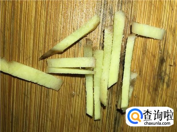 老姜去掉姜皮,切丝,备用。