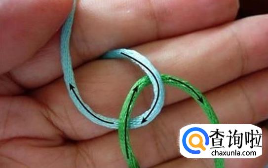 把蓝线顺时针绕过蓝线,挑绿线。