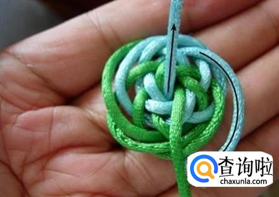 把绿线顺时针饶过绿线,挑蓝线。