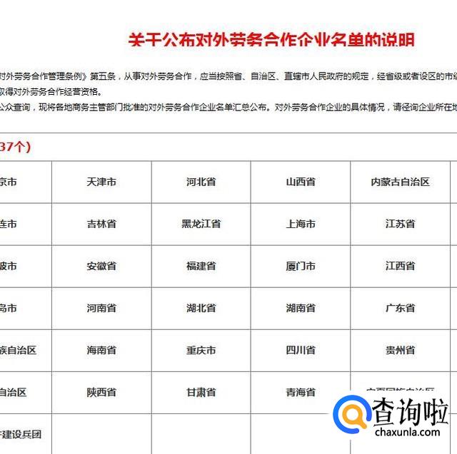 打开之后我们就会看到一个表格,表格名称为”关于公布对外劳务合作企业名单的说明",我们直接在上面找到我我们想要查询的公司所在省份,进行查询就可以了。