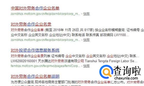 接下来我们就会看到“中华人民共和国对外劳务合作企业名录”,点击”外派企业劳务名单“。