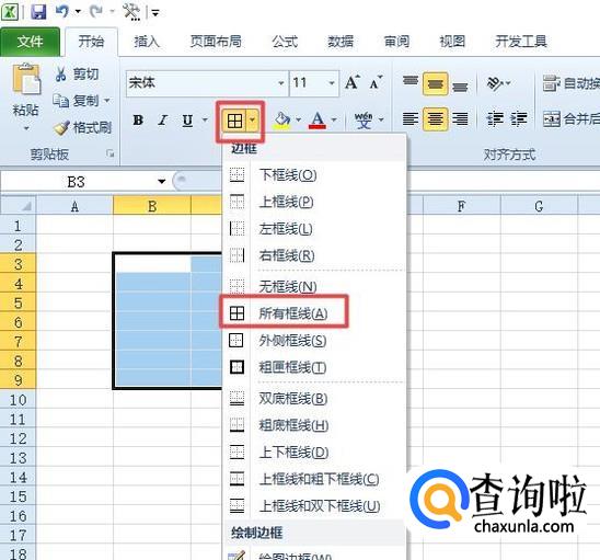 然后我们点击边框按钮,弹出的界面,我们点击所有边框;