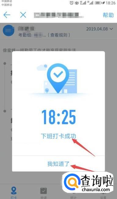 之后就会显示打卡成功,点击知道了就可以了。