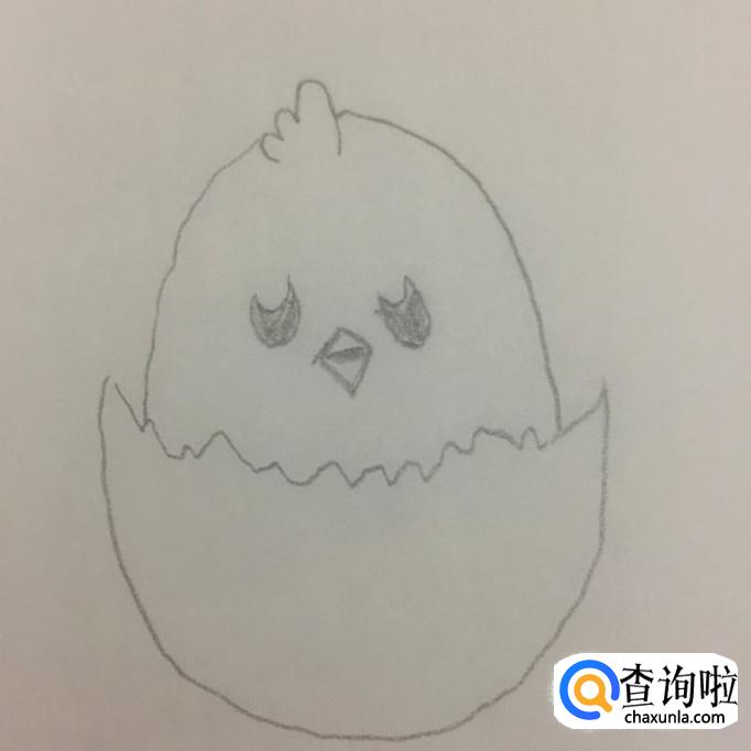 然后画出小鸡的外部轮廓,如下图所示。画这部分的时候要注意两边要相对对称。