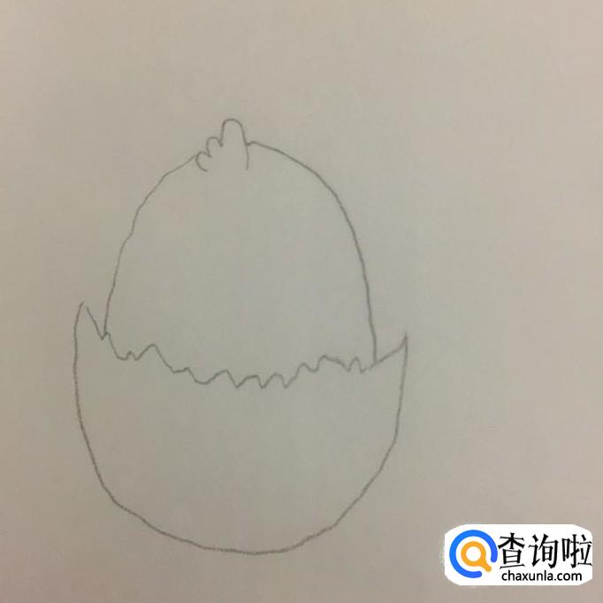 接着画出鸡蛋的破裂部分,如下图所示。画这部分的时候可以把他想象成在画一个半月牙月亮的形状就可以了。