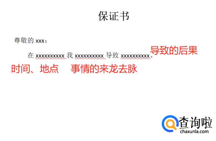 首先写清楚写保证书的原因是什么,原因要详细到发生事情的开头、经过、结尾、时间、地点、人物。清晰、明了直观的表达的事情的发生状况。这样看保证书的人才能一目了然,心情舒畅。