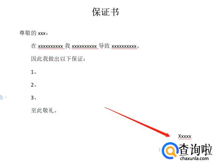 在正文开始前,顶格写上查收保证书的一方尊称,例如:尊敬的xxx、xxxx公司。有职称的可以写职称,例如:李经理、刘老师等。一定要有礼貌性的用语,让人看到就心生好感。