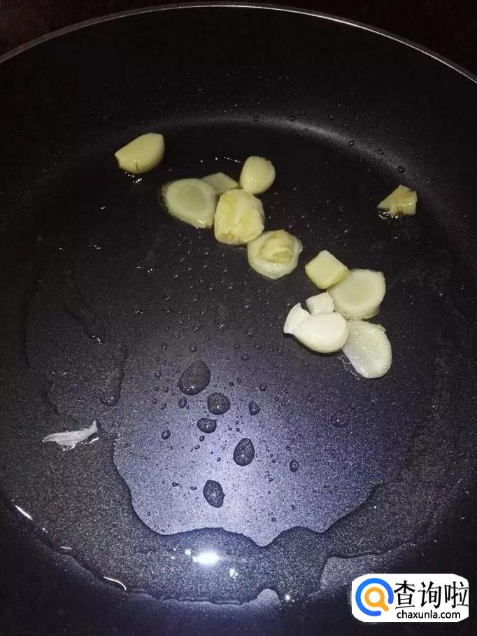 平底锅中放油,放入切好的姜片和蒜片爆香,盛起备用