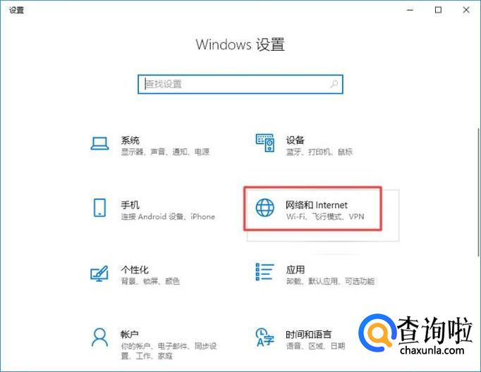 弹出的界面,我们点击网络和Internet;