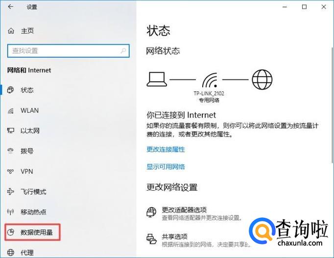 弹出的界面,我们点击数据使用量;