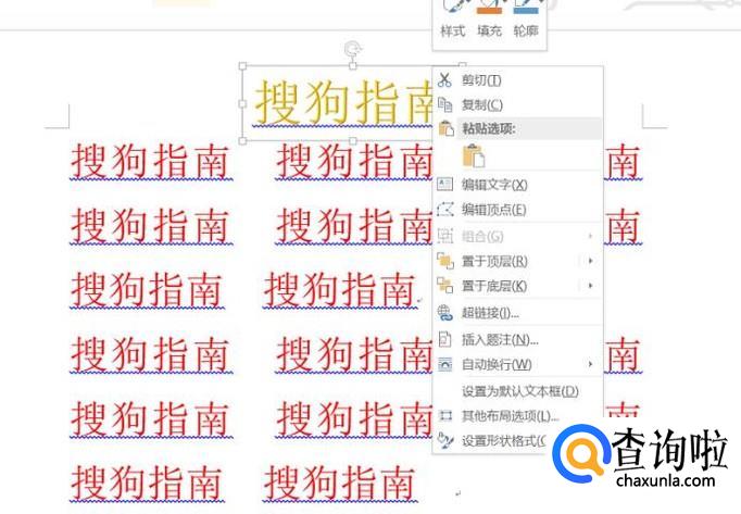 然后这里我们再右键点击这个艺术字框的边框,然后就会弹出一个指令框,然后这里我们选择“其他布局选项”。