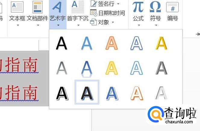 然后这里我们再选择我们想要插入的艺术字类型,然后选择它就可以了,然后我们的Word文档上就会出现我们想要的艺术字框。
