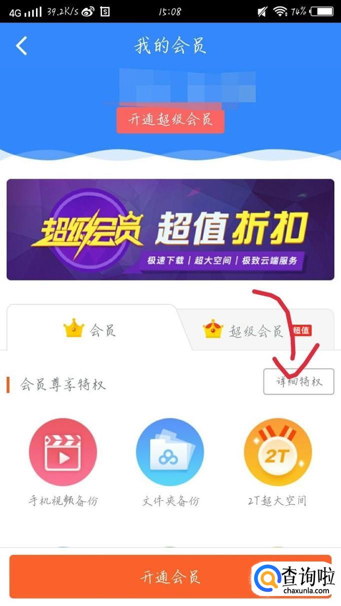 向下滑动手机,点击“详细特权”这个选项,如图1箭头所示。会出现一个新的界面,如图2所示。你可以看到极速下载。所以如果你觉得下载很慢的话,可以考虑开通会员哦。