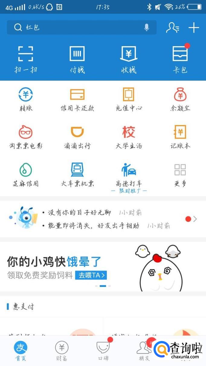 首先打开支付宝这个app,如图1所示。进入支付宝后会出现一个新的界面,如图2所示