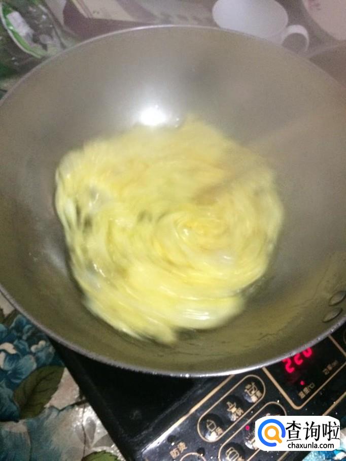 将蛋液倒入油中,约五秒左右进行搅拌,防止糊锅。