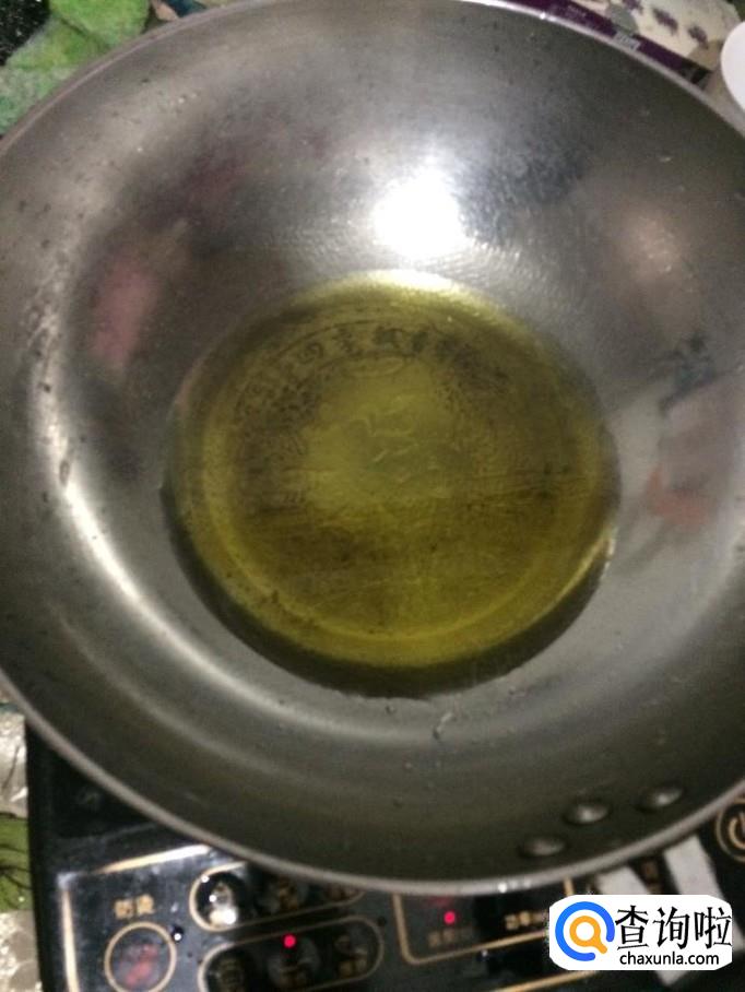 锅底放油,并开火热油,直到油表面没有气泡。