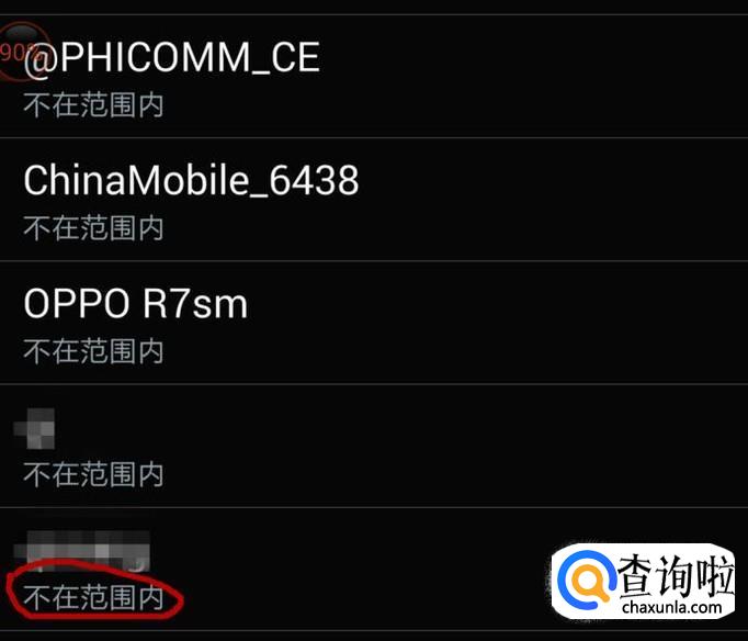 经过以上操作,手机就无法直接连接这个路由器了,会显示原来的网络名称“不在范围内”。