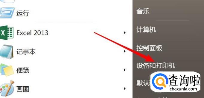 点击开始菜单上的‘设备和打印机’