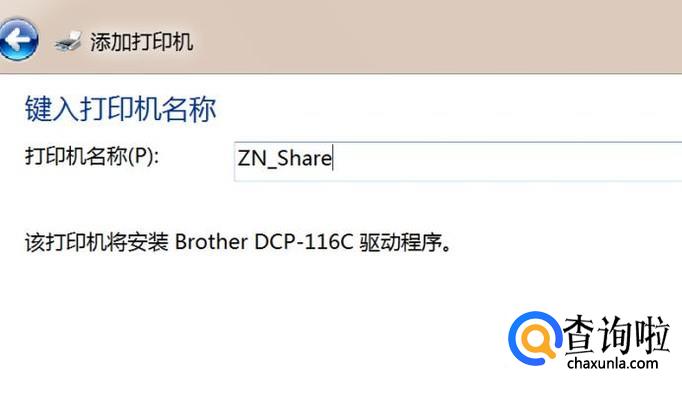 输入打印机的名称,然后点击‘下一步’