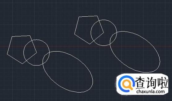 第二种情况,多个块组合形成的块,需要一步一步分解。如图:椭圆和圆组成块1,块1与多边形组成块2.