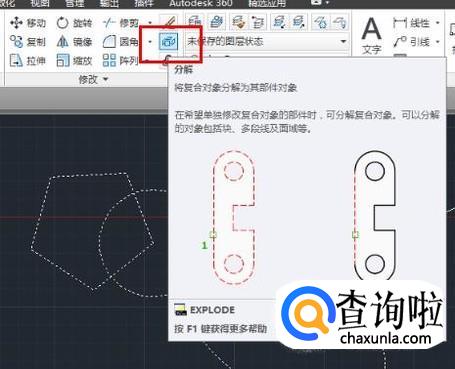 选中块2,点击上方的“分解”按钮。分解完成图如下: